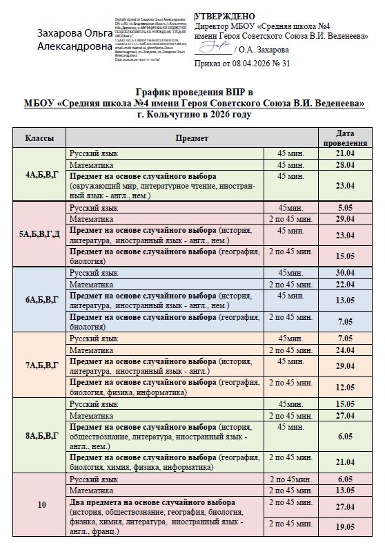График проведения ВПР в 2026 году!
